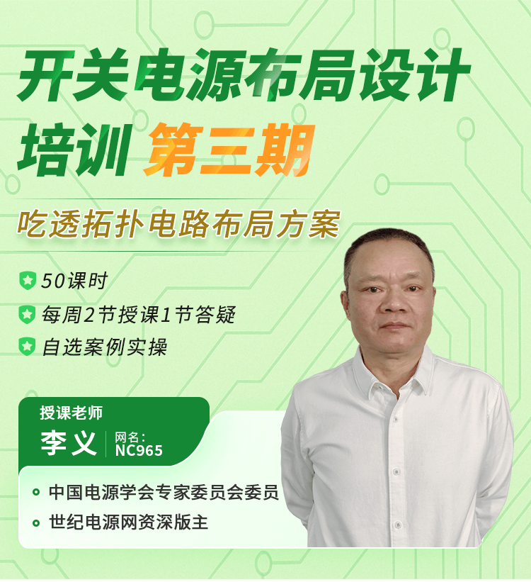 本培训按照开关电源的行业特点、产品和市场特点、围绕设计生产的各个环节、行业规则、关键问题、技术要领开设课程授课,通过精心设计的培训进程、既纵观全局又突出重点的课程安排、反复练习直到形成职业习惯的课堂作业互动形式、力图使经过培训的人员具备本行业、本培训课程涉及领域需要的全部见识、职业技能和熟练程度,能成为公司内该领域的专门人才、技术带头人和一线工程师。